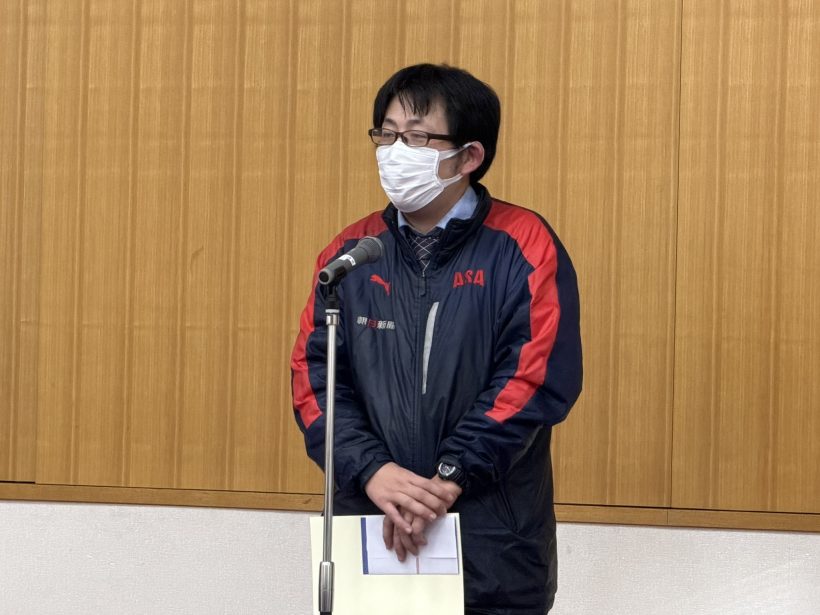 第27期のレビューと第28期の方針を語る社長。ほか、ASA南部店店長とASA北部店店長が登壇し目標を発表しました。