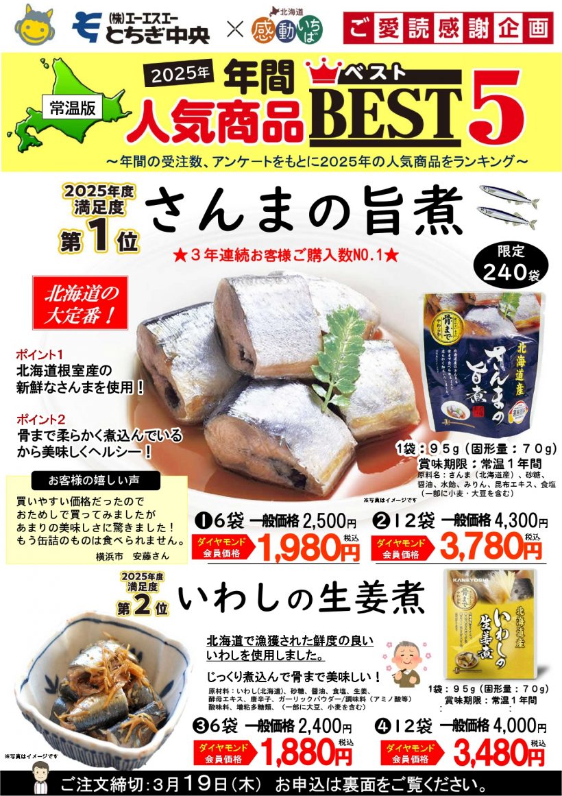 ご愛読感謝企画!「感動いちば2025 年間人気商品(常温)BEST5」販売 ※締切3月19日(木)